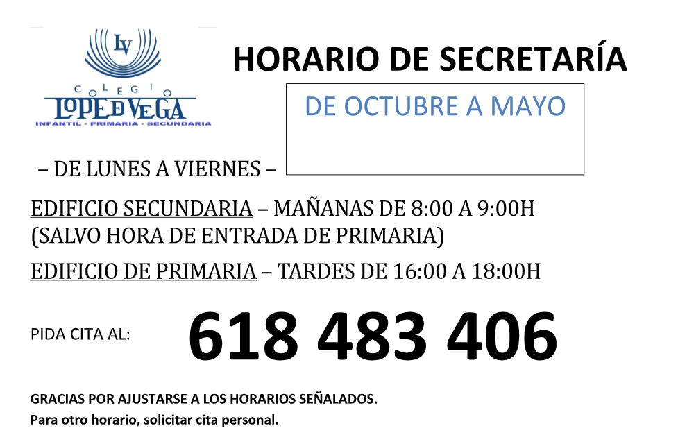 HORARIO DE SECRETARÍA CON CITA PREVIA